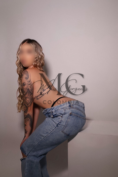 Ojo de Tigre is pure temptation. At 25, she embodies fierce femininity and unfiltered sensuality. Her long wavy blonde hair, glowing skin and curvy figure will leave you stunned. Her tattoos, especially on her arm, speak of a bold, fearless woman who knows how to seduce with attitude.